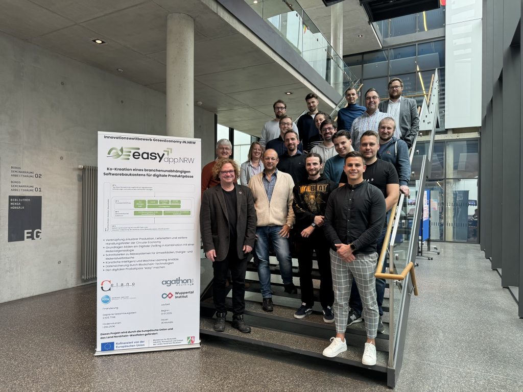 Der Projektstart für easy.dpp.nrw fand mit allen Partnern bei einem gemeinsamen Kickoff-Meeting statt. Neben dem inhaltlichen Auftakt gab es spannende Einblicke in die Produktion bei der agathon GmbH – ein gelungener Start in die Zusammenarbeit.